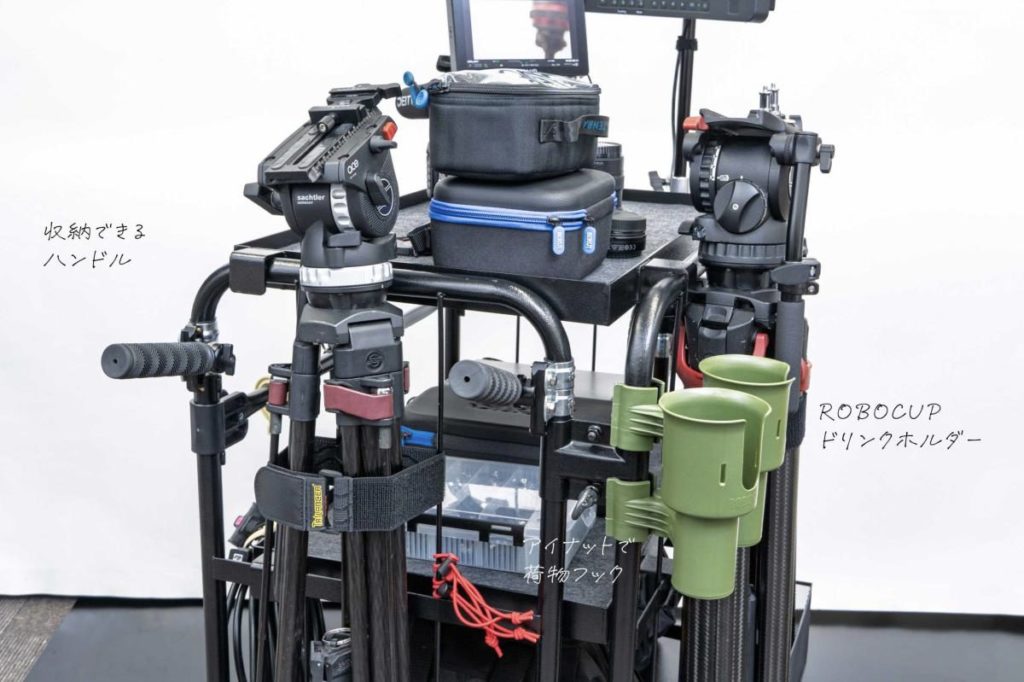 撮影場所に機材を運び終えたら、今度は台車が邪魔になることもありますよね。「クロウディLOW」は、黒一色のシンプルなデザインなので、スタジオやロケ現場の雰囲気を邪魔することなく、自然と溶け込みます。