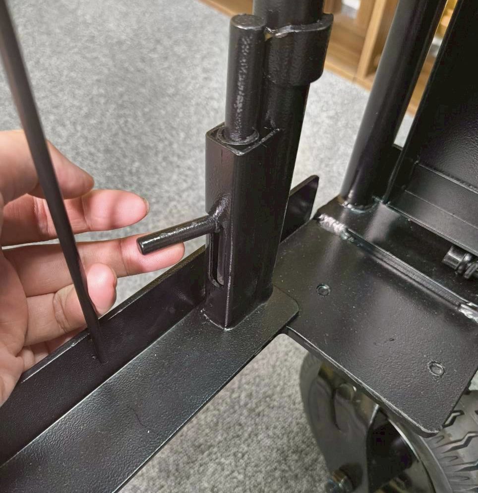 - 台車を正面に見て、左奥にある小さなピンを抜きます。