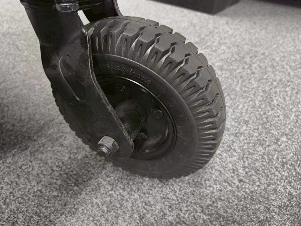 ようやく撮影場所に着いても、機材を運び込む道のりがデコボコ道で大変…なんてことも。「クロウディLOW」は、一般的な台車よりも50mmも大きな直径200mmの大径キャスターを装備しています。タイヤはブロックパターンを採用しているので、屋外や不整地でも機材を安定して運ぶことができます。
