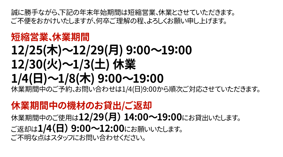 年末年始の営業について